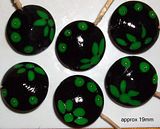 1 Set of 6 green 'hand-crafted' floral pattern with gold beads.