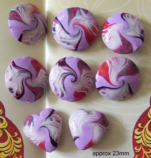 1 Set of 8 lilac purple base beads. My first attempt in making translucent crackle canes on beads! 6 lentils, 2 hearts.
