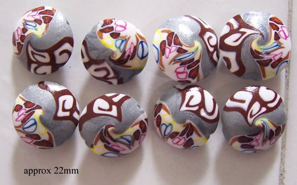 1 Set of 8 silver base lentil beads. The brown areas look like the window to your soul...