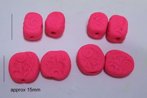 Set of 4 bright pink beads. 1 set contains 2 oblong and 2 flattened beads. 2 sets available.