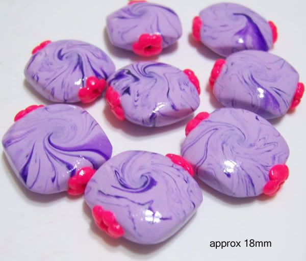 1 Set of 8 square plus spacer beads. Dark and light purple base. Bored of the golden and silver colored spacer beads? These handmade beads come with pink colored spacer-lookalike beads!