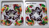 1 Set of 8 white based lentil beads. Looks like a colorful party with masked guests.