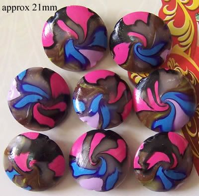 1 Set of 8 lentil beads. Hidden brown base with colorful flowers swirling on it. Lightly glazed.