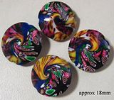 1 set of 4 blue base lentil beads. Kaleidoscope with funky yellow and rowdy pink+black.